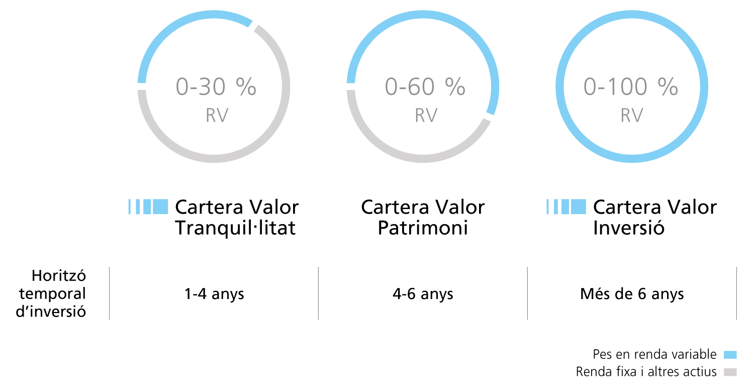 CaixaBank Banca Premier ha creat per a vostè la nova gamma de Carteras Valor. Si coneixem els seus objectius, li podrem oferir solucions que l’ajudin a aconseguir-los.