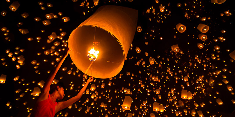 Si té sort, el viatge coincidirà amb el Loi Krathong, una experiència visual famosa ja arreu del món pels milers i milers de rais amb llanternes que omplen platges i rius, tot i que avui també és molt popular preparar globus de paper i llançar-los a l’aire. Se celebra la primera nit de lluna plena del dotzè mes del calendari lunar tailandès tradicional. I això sol coincidir exactament amb el nostre mes de novembre. Encara que es celebra a tot arreu (fins i tot a Laos i Cambodja, atès que és d’origen budista) l’epicentre d’aquest festival és Chiang Mai, al nord de Tailàndia. A més, avui és costum acompanyar el festival amb concursos de bellesa i altres actes festius. Allà on sigui, sigui més gran o més petit, serà un record inoblidable que l’acompanyarà per sempre.