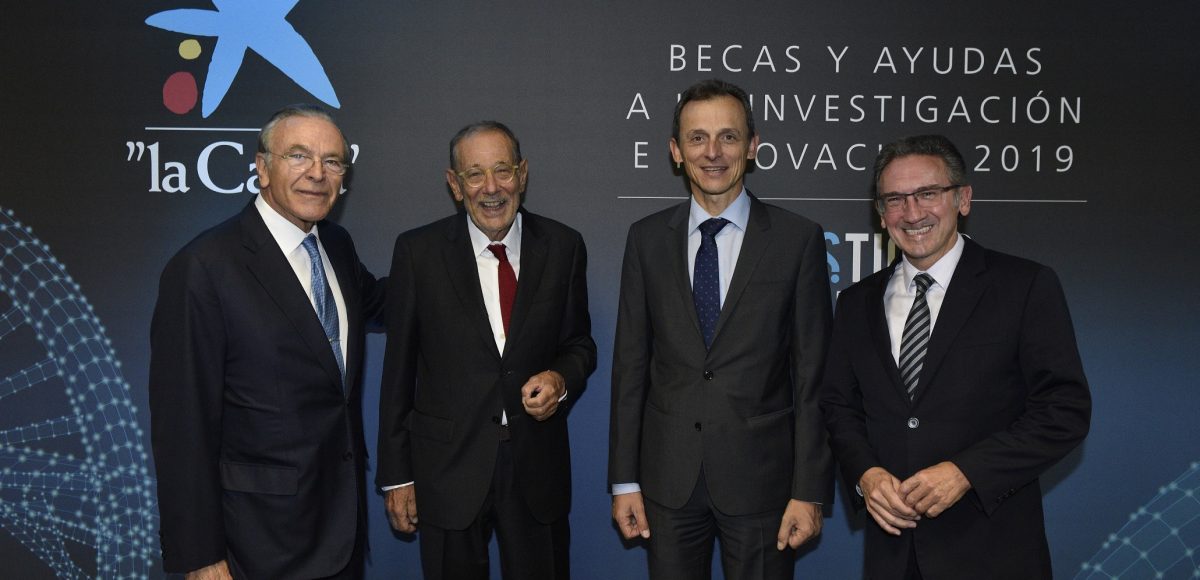 Isidre Fainé, president de la Fundació Bancària ”la Caixa”; Jaume Giró, director general de la Fundació Bancària ”la Caixa”; Javier Solana, membre del Patronat i del Consell Assessor d’Experts en Recerca de la Fundació Bancària ”la Caixa”, i Pedro Duque, ministre de Ciència, Innovació i Universitats del Govern d’Espanya, han lliurat els ajuts als 79 investigadors nacionals i internacionals que, gràcies a les recerques que desenvoluparan a les millors universitats i centres d’investigació d’Espanya i Portugal, seran capaços de canviar el futur de les persones. ”la Caixa” destina a aquestes noves iniciatives 28 milions d’euros.