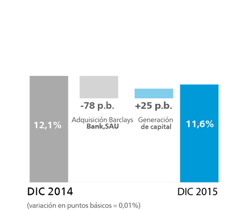 NOTA: Consolidación de Barclays Bank, SAU a partir del 1 de enero de 2015. La información financiera histórica ha sido reexpresada tras la aplicación de la IFRIC 21 y NIC 8.