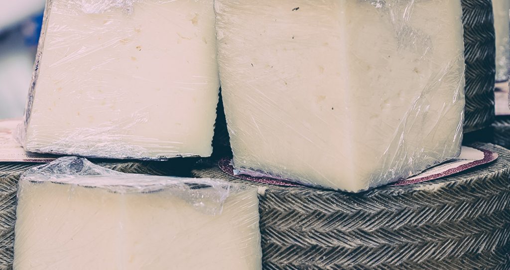 - Manchego: Hecho con leche de oveja, tiene un color dorado-marfileño y corteza de color paja. Es el queso más conocido fuera de España. Va desde versiones suaves y jóvenes a las más fuertes. Esto depende del tiempo de curación. Se suele tomar con vino tinto con cuerpo o jerez seco.