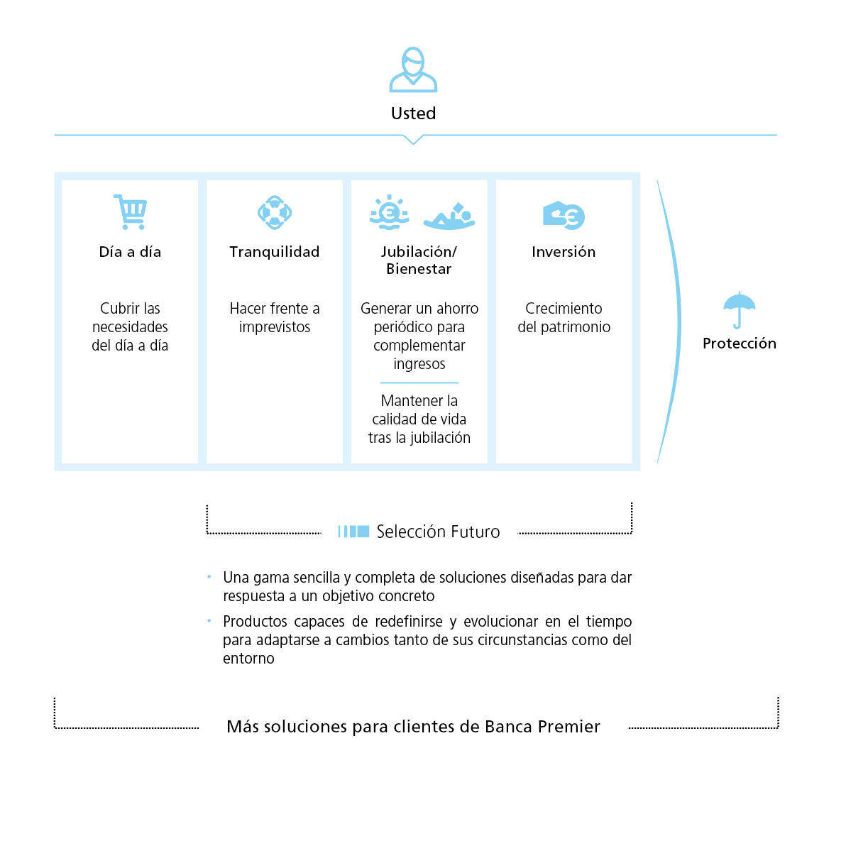 A partir de una reflexión global de sus necesidades podremos ordenar su patrimonio, diseñando un PlanA, un plan sencillo y personalizado que le proporciona las soluciones exclusivas que mejor se adaptan a sus necesidades: para su día a día, para su tranquilidad, para su inversión y su jubilación.